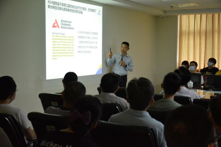 李教授首先在五樓行政會議室開展題爲《院内高血糖管理的重點和難點》的學術講座,副院長陳松深主持,各臨床科室派出醫療骨幹參加學習交流。